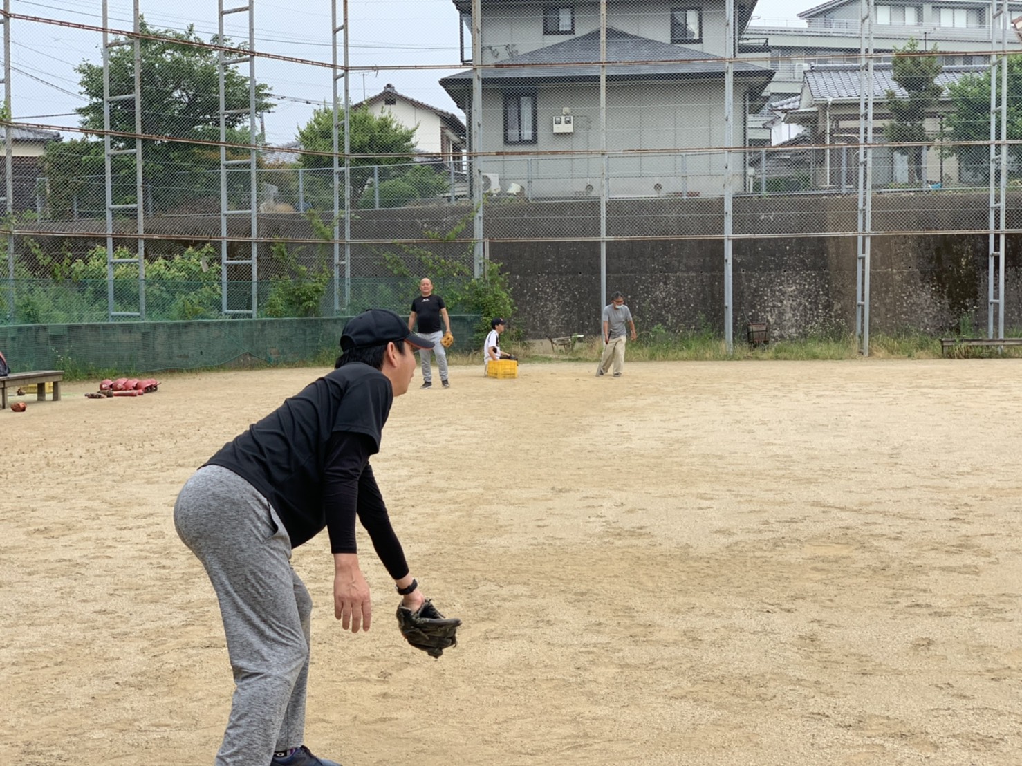 お父さんたちも久々の練習に力が入ります