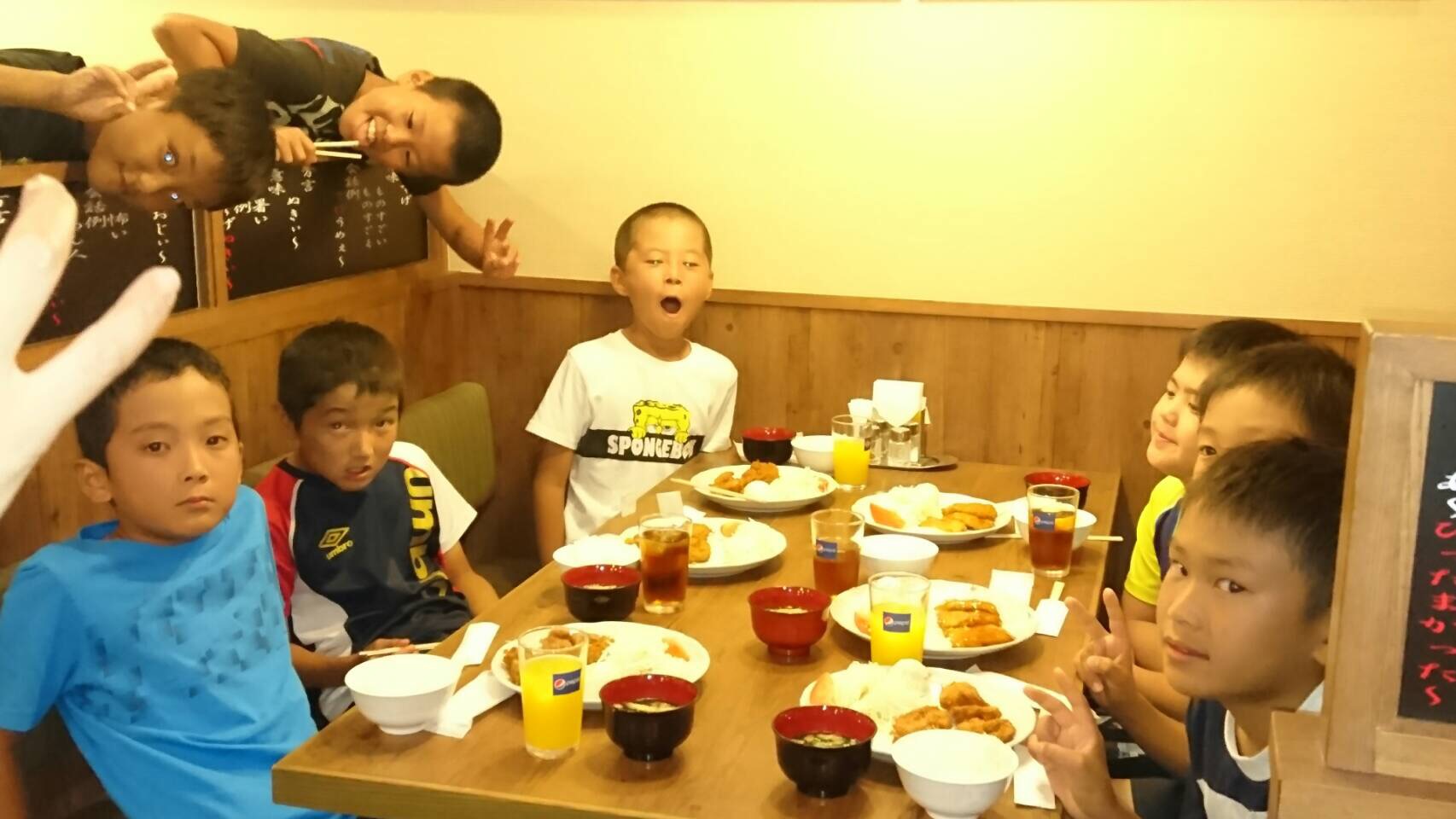 緊張の第1試合を終えてみんなで昼食
